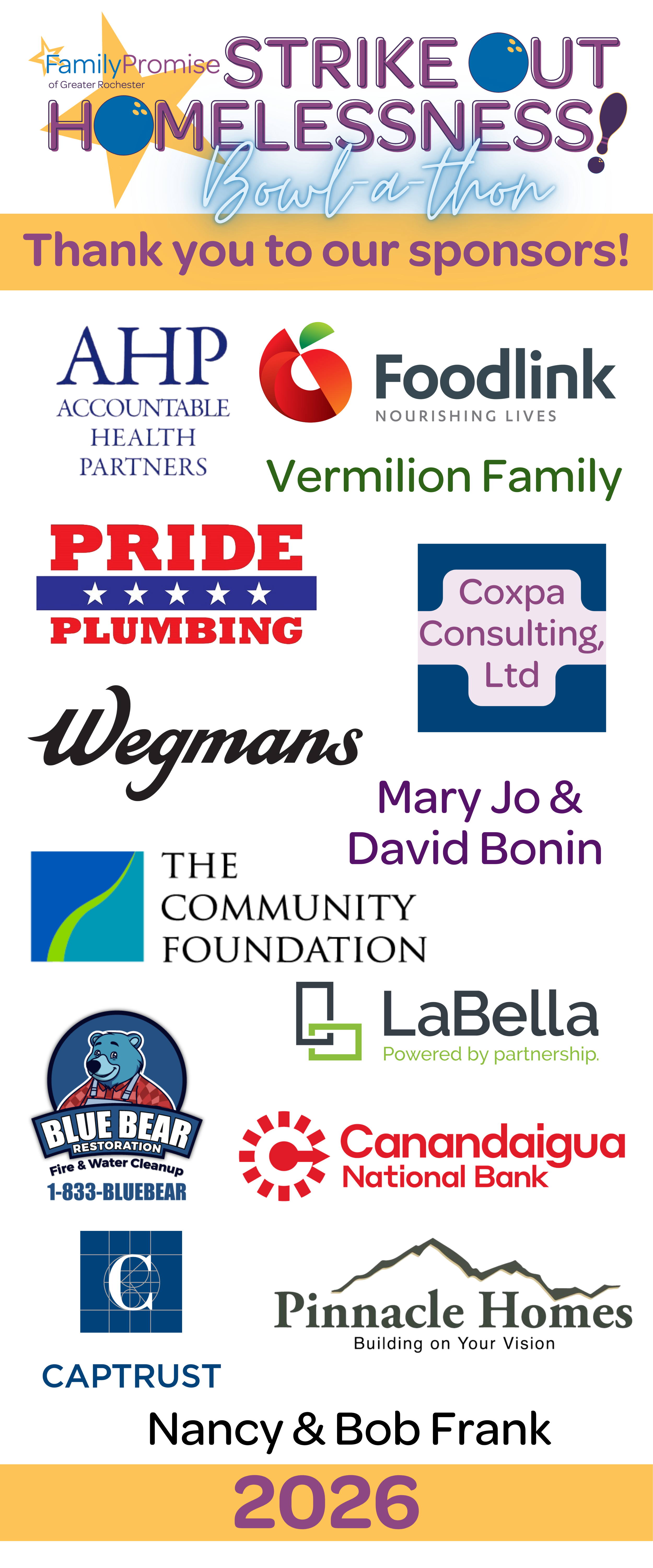 Strike Out Homelessness is a fun event for families and friends to raise funds for Family Promise’s mission to assist families at risk of or experiencing homelessness to achieve sustainable independence by providing person-centered, holistic services in collaboration with the greater community.
